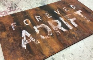 Handpainted signage and effects on plywood. Completed using a combination of shellac, acrylic paint and metho based washes.